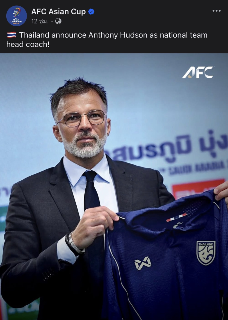 หลังสมาคมกีฬาฟุตบอลแห่งประเทศไทย ประกาศแต่งตั้ง แอนโธนี ฮัดสัน กุนซือชาวอังกฤษ เข้ารับตำแหน่งหัวหน้าผู้ฝึกสอนทีมชาติไทยชุดใหญ่ แทนที่ มาซาทาดะ อิชิอิ