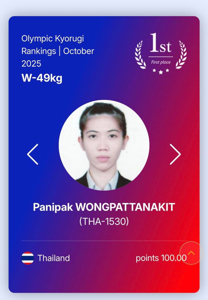 อย่างไรก็ตาม “น้องเทนนิส” ยังคงครองตำแหน่งมือ 1 ในอันดับโอลิมปิกเทควันโด