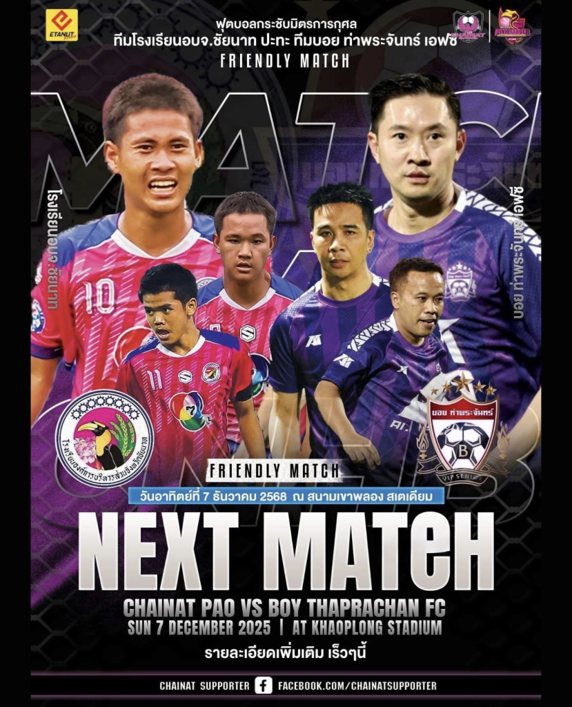 ล่าสุด แฟนไทยห้ามพลาด โปรแกรมนัดต่อไป “ทีมบอย ท่าพระจันทร์” สนามแตกแน่ !!!