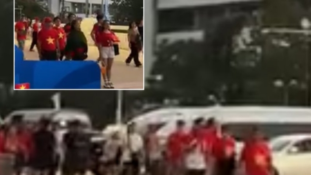 เมื่อภาพจับได้ว่า แฟนบอลทีมชาติเวียดนาม หยุดยืนทันที เมื่อได้ยินเสียงเพลงชาติไทย ในขณะที่กำลังเดินอยู่บริเวณ สนามราชมังคลากีฬาสถาน