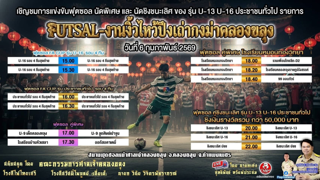 สนามฟุตซอลหน้าศาลเจ้าคลองขลุง อ.คลองขลุง จ.กำแพงเพชร